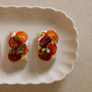 Olive ciabatta with ricotta & tomato