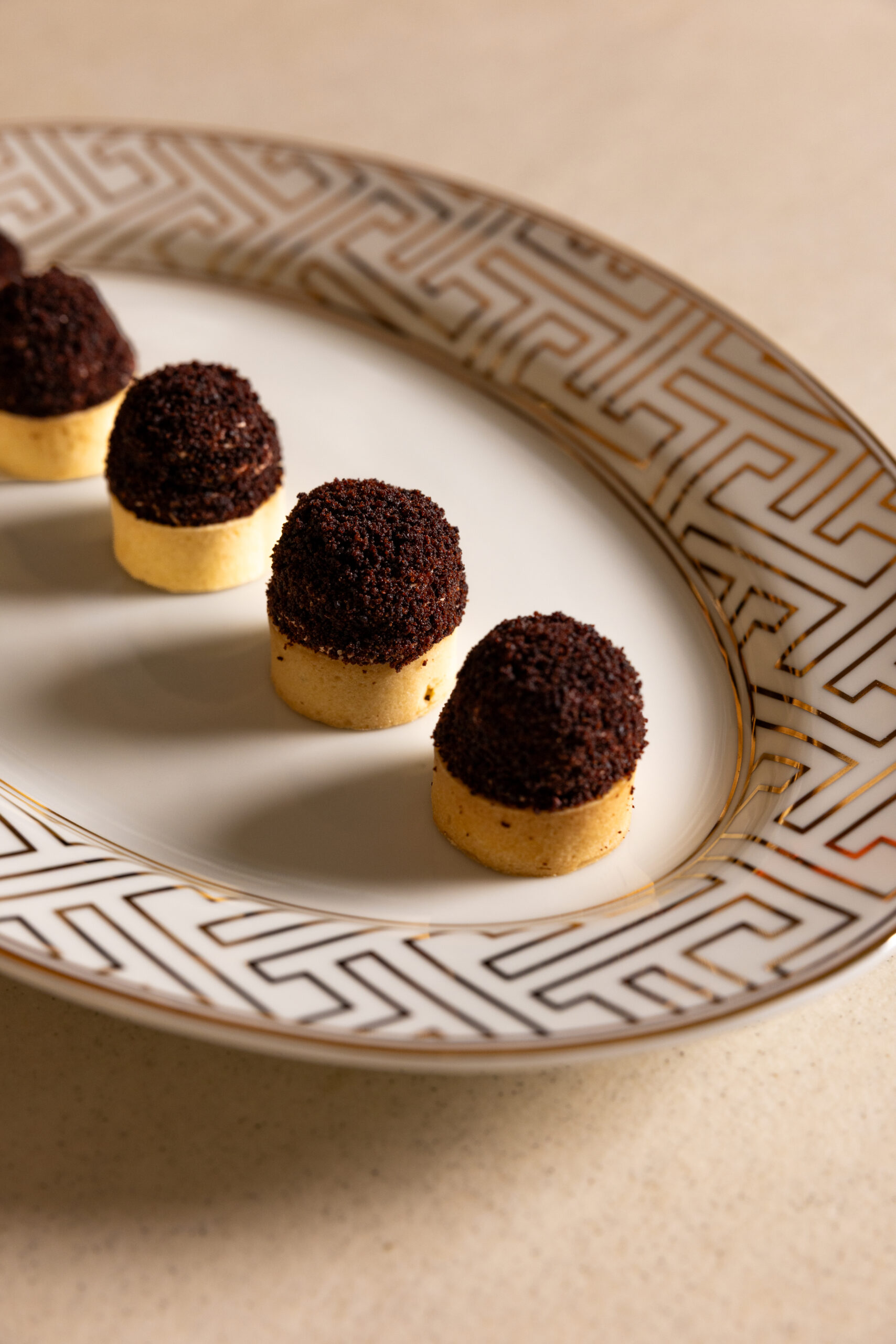 Each creation captures the essence of the colder months: comforting textures, delicate warmth, and the poetry of winter ingredients elevated to haute-cuisine artistry. From golden truffle canapés and chestnut tartlets bites to candied madeleines and shimmering praline petits fours , every bite is a story of craft, seasonality, and elegance.