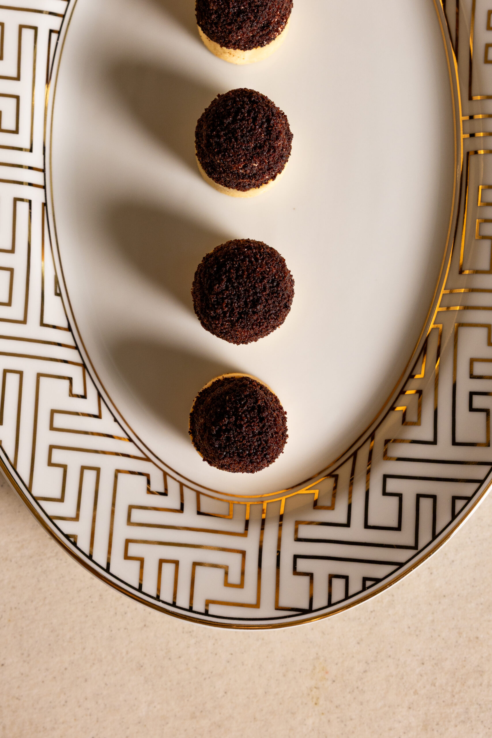 Our Chocolate Truffle, a Chef(fe) d’Œuvre miniature indulgence, where smooth ganache meets delicate sponge, creating a deep and elegant harmony of pure chocolate pleasure.