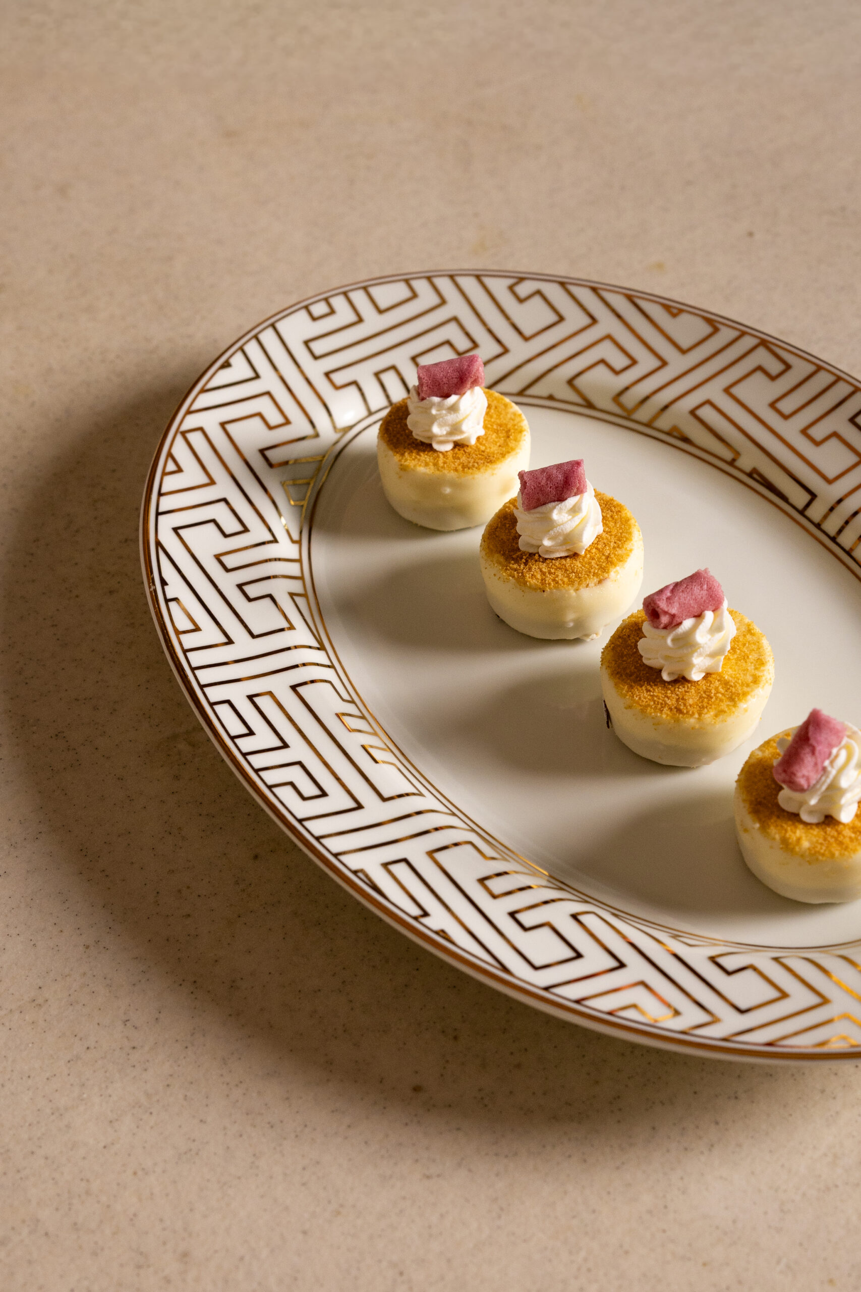 Each creation captures the essence of the colder months: comforting textures, delicate warmth, and the poetry of winter ingredients elevated to haute-cuisine artistry. From golden truffle canapés and chestnut tartlets bites to candied madeleines and shimmering praline petits fours , every bite is a story of craft, seasonality, and elegance.
