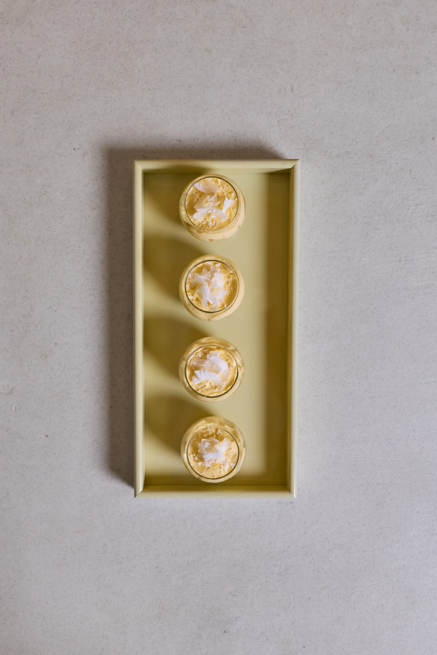 A creamy and delicate tiramisu reinterpreted with white chocolate and coconut. Pearl Coco is envisioned as a soft white composition, smooth and comforting, with a subtle tropical note that keeps the dessert light, chic, and memorable.